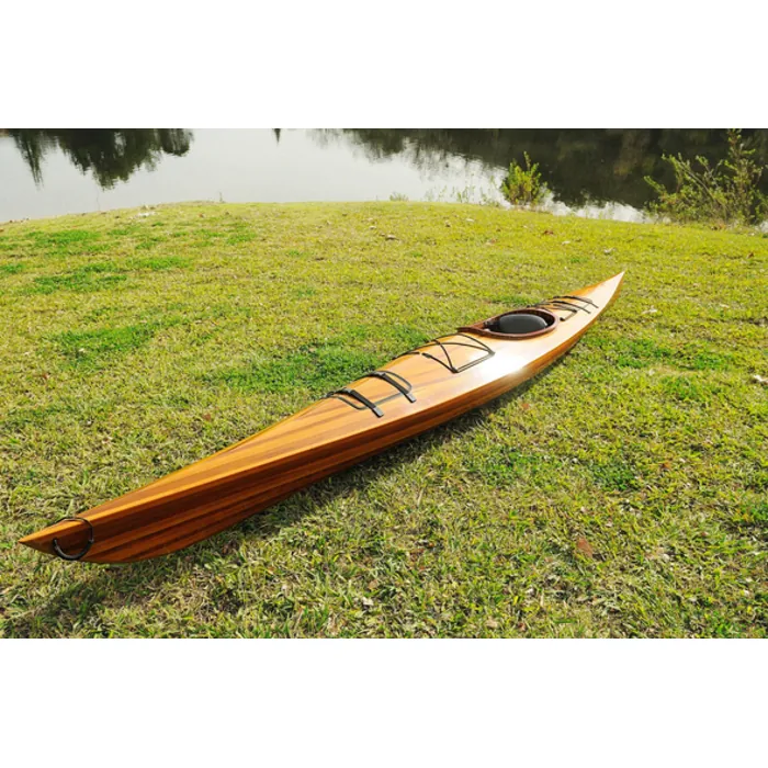 It’s not about just being on the water, it’s about deftly cutting through it, it’s about a smooth one-of-a-kind experience, and it’s about knowing that your water craft is a handmade emblem of true craftsmanship. Over 500 hours of build time means that you not only get nautical precision, but the stunning beauty that comes from hand joined cedar strips--the best quality available. Extra care is taken with the finish as the kayak’s exterior combines a fiberglass epoxy resin with a marine varnish ensuring the boat’s longevity and durability. While this is a kayak that will bring you endless enjoyment out on the lake or river, this is also a true artisan inspired piece destined to become that treasured family heirloom to be handed down from one generation to the next. This 17 kayak (206"es) has the following measurements: Length: 206"es (over 17 feet) Width: 23"es. Bow Height: 13"es Cockpit dimension: 31.5x17.5"es. Weight: About 50 lbs Capacity: up to 550lbsFeatures- Stunning beautiful clear graded cedar hull- Fiberglass adds important tensile strength and abrasion resistance to the wood - 100% western red cedar make our boats surprisingly light weight that one person can carry - Come with a show graded set of wooden paddles.