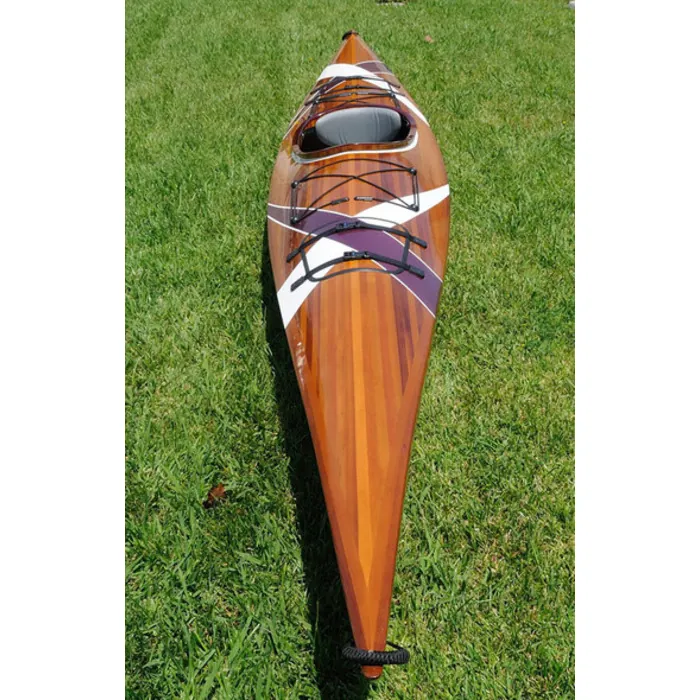 What could make our truly unique handcrafted wooden boats even better - hand painted stripes that add a pop of color and a classy elegance to the vessel. This 15’ kayak with custom stripes is truly a piece to behold. Not to mention, the way that it gracefully glides through the water will make you never want to leave the peace and tranquility of the river, lake or stream. Generations of boat builders certainly knew what they were doing, and we pride ourselves on adopting those same old world values in every single product we sell. The lines, the care taken as each cedar strip is hand joined and then coated with an incredibly durable fiberglass epoxy is like nothing you’ve ever seen before. You will instantly fall in love with this kayak. This 15 kayak (177") has the following measurements: * Bow Height: 10"es; * Mid Height: 9.5"es; * Stern Height: 13.5"es; * Cockpit dimension: 31.5 x 17.75"es. * Weight: 45lbs. * Capacity: 500 lbs Features - Stunning beautiful clear graded cedar hull - Fiberglass adds important tensile strength and abrasion resistance to the wood - 100% western red cedar make our boats surprisingly light weight that one person can carry - Come with a show graded set of wooden paddles.