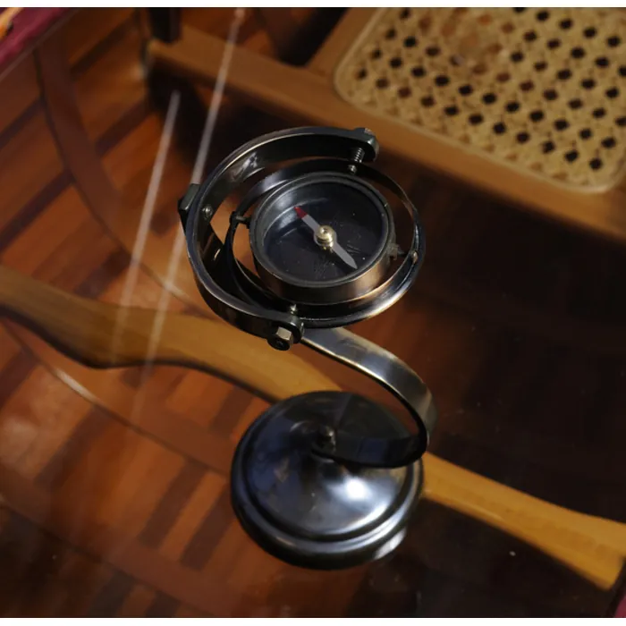 This is a fully functional gimbaled compass. It is made of high quality brass. Each component is crafted with the finest craftsmanship. Compass, body, and round stand is made of solid brass while other parts are made of brass strip. Available in antique brass finish and it comes on a solid brass stand. This compass is a great addition to any nautical collection. The item dimensions are: L: 3.5"es, W: 3.5"es, H: 7"es.