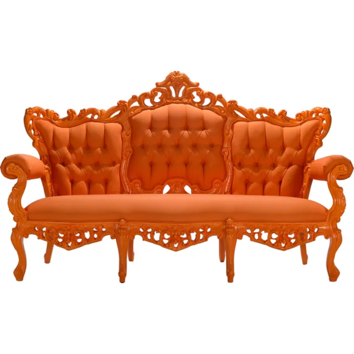 PolArt, a specialty furniture designer, offers modern Baroque-Inspired, Eclectic indoor and outdoor furniture and accent pieces that are all this and more, with breathtaking takes on classical baroque furnishings made with brightly colored polyresin and high-end upholstery, perfect for a statement piece that will really wow. Each piece is customizable with different frame and upholstery colors, and is made to order. Production usually takes 6-8 weeks, and about 2 more weeks to deliver.