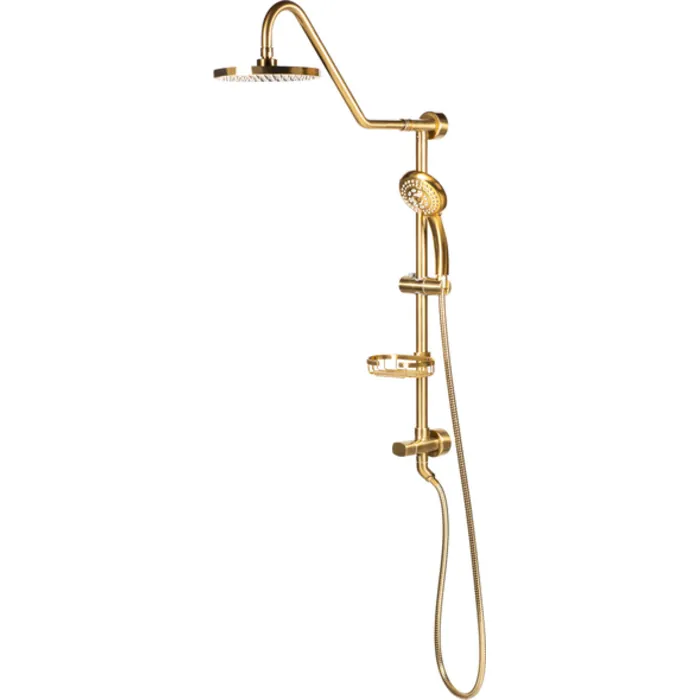 - Brass slide bar, soap dish, diverter and shower arm