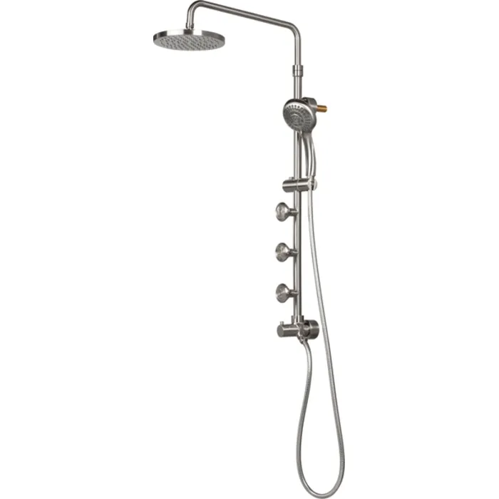 The Lanikai 3 Function Shower System quickly and easily transforms your shower. Enjoy fingertip control via the conveniently located diverter. Choose between a soothing, oversized rain showerhead, convenient multi-function hand shower, or rejuvenating dual-function body jets. The unique brass shower arm pivots and has 3" of height adjustment. Typical install is less than 1 hour—even for the do it yourselfer. It simply connects to the water supply at your existing showerhead location and uses your existing hot/cold shower valve.