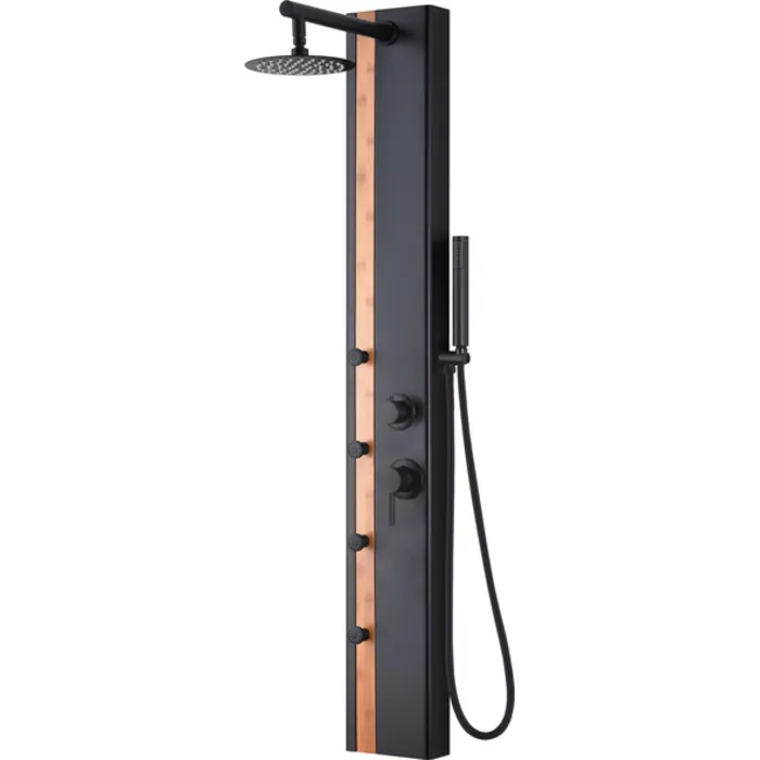 The Eclipse ShowerSpa comes in an all matte black finish to complement any modern or contemporary bathroom. The stainless steel brushed or bamboo panel accent adds a sleek finish to this gorgeous shower panel. The Eclipse ShowerSpa has 4 massaging body jets to reach any target along with a functional wand handshower. The 8" rain showerhead adds to the beauty of this shower panel giving you the ultimate spa like experience. The aluminum body, brass diverter and brass pressure balance valve add durability, complementing this already stunning shower panel.