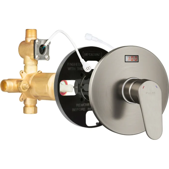 PULSE ShowerSpas Tru-Temp Pressure Balanced Rough-In Valve with Trim Kit comes in three beautiful finishes and compliments any PULSE retrofit shower system. This valve utilizes a pressure balancing mixing cartridge to ensure constant water temperature in response to changes in water pressure (e.g. flushing a toilet). The valve also comes equipped with an adjustable Hot Limit Safety Stop to reduce risk of scalding along with a water power generated LED temperature display to assure your desired temperature every time. The Plaster Guard is to be used as a guide, making installation easier than ever!