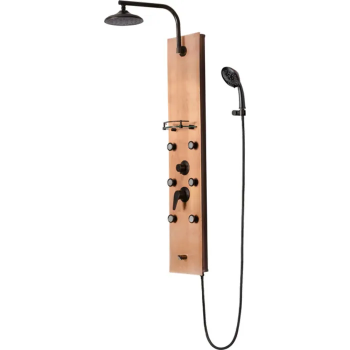 The La Mesa ShowerSpa is the first completely pre-plumbed shower panel in the Diamond Collection. Every shower panel is unique in its own right, made of beautifully reclaimed brushed copper, subtle imperfections add character and charm on every panel. The La Mesa comes equipped with an 8" soothing rain showerhead on a convenient 180° horizontal pivoting arm, 6 Silk-Spray™ body jets, a multi-function handshower, and useful glass shelf. Due to its handcrafted nature, minor variations in finish should be expected and are an intentional and desirable aspect of this product.