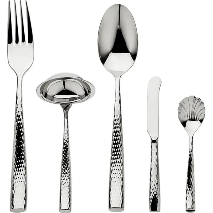 - Set includes spreader, serving spoon, fork, ladle and sugar spoon
