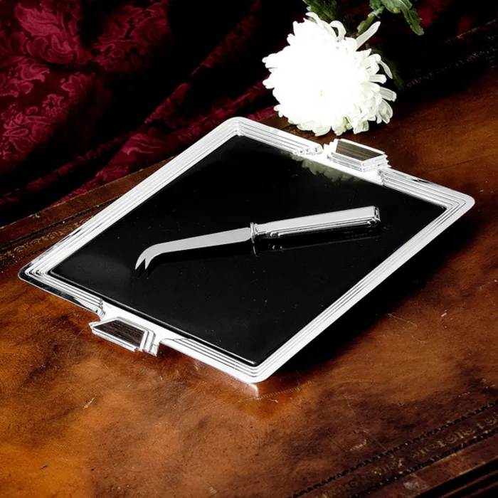 Ricci Argentieri Art Deco Marble Silverplate Cheese Set/knife 30100
