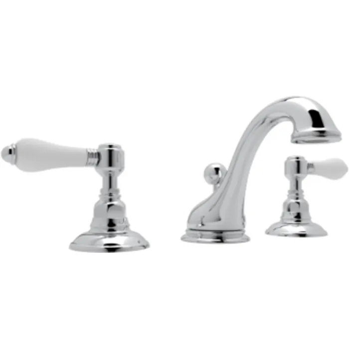 ROHL ITALIAN BATH VIAGGIO WIDESPREAD LAVATORY FAUCET IN POLISHED CHROME WITH PORCELAIN LEVERS POP-UP AND ^C^ SPOUT