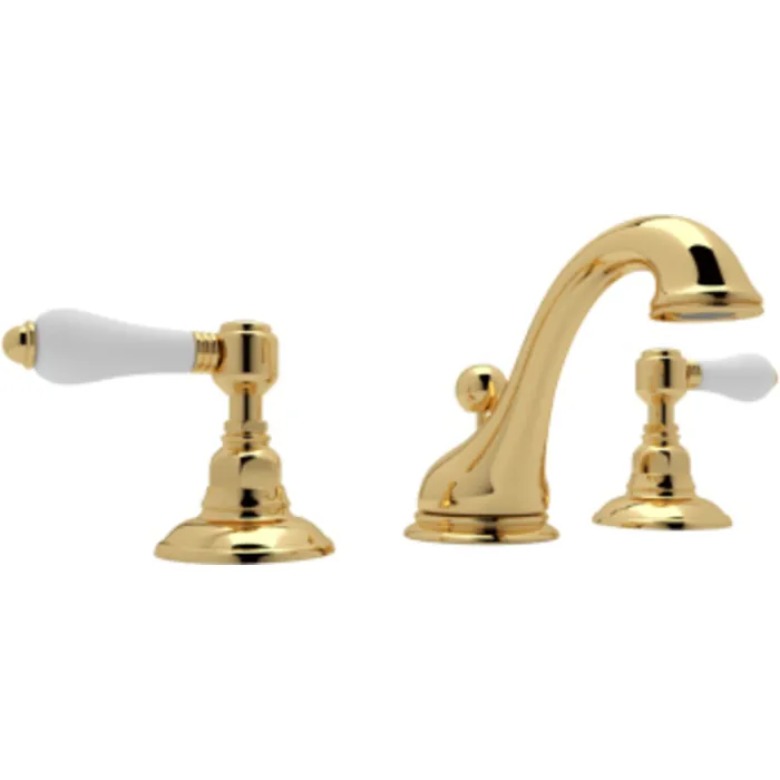 ROHL ITALIAN BATH VIAGGIO WIDESPREAD LAVATORY FAUCET IN ITALIAN BRASS WITH PORCELAIN LEVERS POP-UP AND ^C^ SPOUT