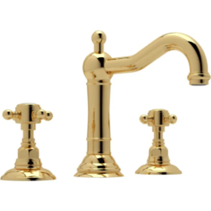 ROHL ITALIAN BATH ACQUI WIDESPREAD LAVATORY FAUCET IN ITALIAN BRASS WITH CROSS HANDLES POP-UP AND COLUMN SPOUT