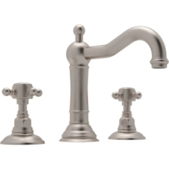 ROHL ITALIAN BATH ACQUI WIDESPREAD LAVATORY FAUCET IN SATIN NICKEL WITH CROSS HANDLES POP-UP AND COLUMN SPOUT