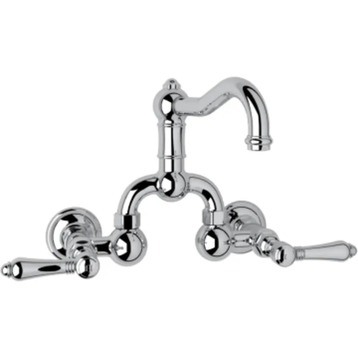 ROHL ITALIAN BATH ACQUI WALL MOUNT LAVATORY BRIDGE FAUCET IN POLISHED CHROME WITH METAL LEVERS POP-UP AND COLUMN SPOUT