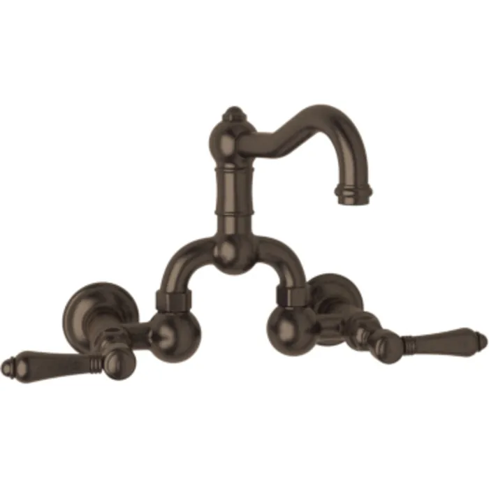 ROHL ITALIAN BATH ACQUI WALL MOUNT LAVATORY BRIDGE FAUCET IN TUSCAN BRASS WITH METAL LEVERS POP-UP AND COLUMN SPOUT