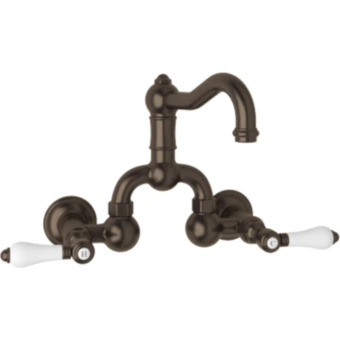 ROHL ITALIAN BATH ACQUI WALL MOUNT LAVATORY BRIDGE FAUCET IN TUSCAN BRASS WITH PORCELAIN LEVERS POP-UP AND COLUMN SPOUT