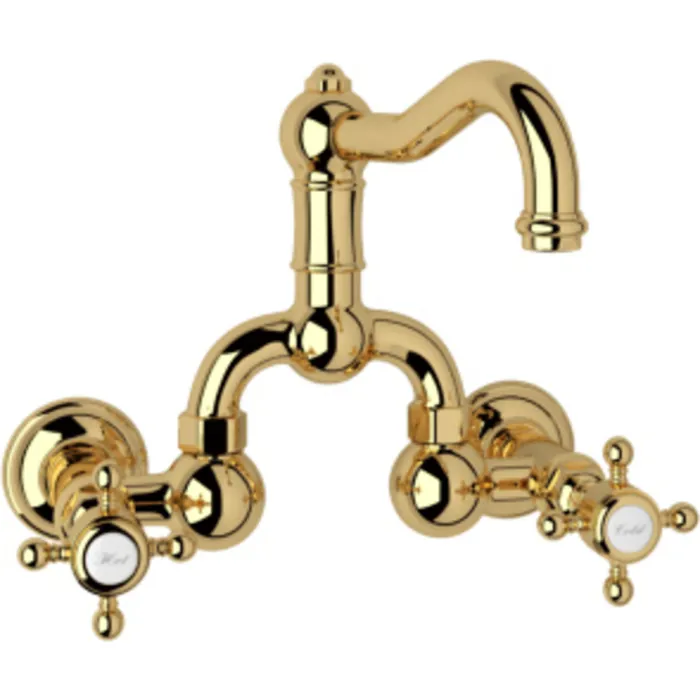ROHL ITALIAN BATH ACQUI WALL MOUNT LAVATORY BRIDGE FAUCET IN ITALIAN BRASS WITH CROSS HANDLES POP-UP AND COLUMN SPOUT
