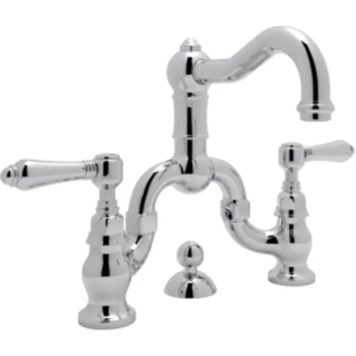 ROHL ITALIAN BATH ACQUI DECK MOUNTED LAVATORY BRIDGE FAUCET IN POLISHED CHROME WITH METAL LEVERS POP-UP AND COLUMN SPOUT