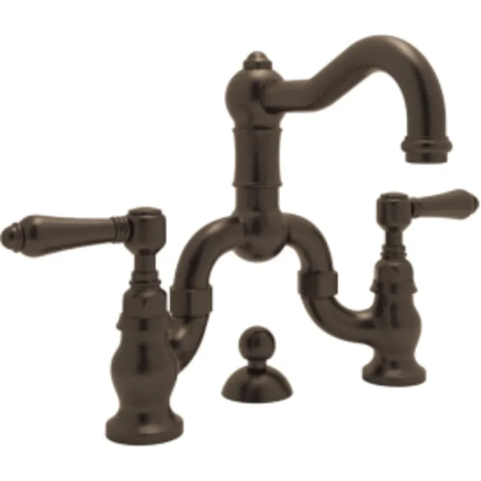 ROHL ITALIAN BATH ACQUI DECK MOUNTED LAVATORY BRIDGE FAUCET IN TUSCAN BRASS WITH METAL LEVERS POP-UP AND COLUMN SPOUT