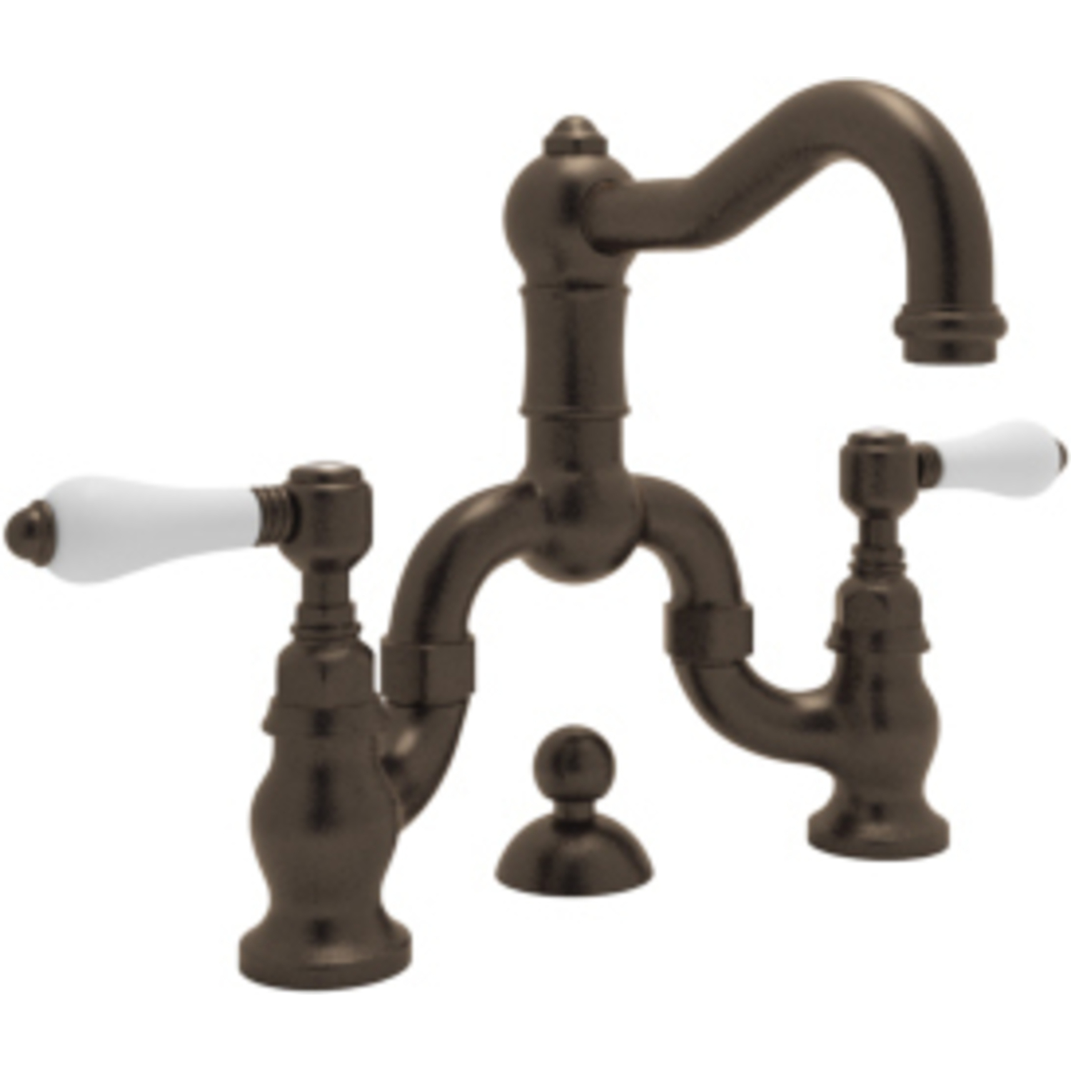 Rohl Italian Bath Acqui Deck Mounted Lavatory Bridge Faucet In Tuscan Brass With Porcelain Levers Pop-up And Column Spout A1419LPTCB-2
