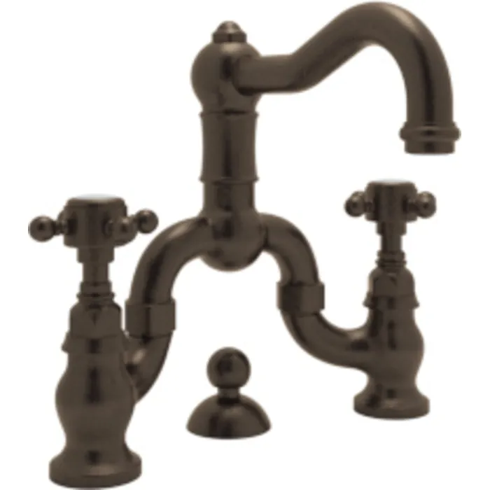 ROHL ITALIAN BATH ACQUI DECK MOUNTED LAVATORY BRIDGE FAUCET IN TUSCAN BRASS WITH CROSS HANDLES POP-UP AND COLUMN SPOUT
