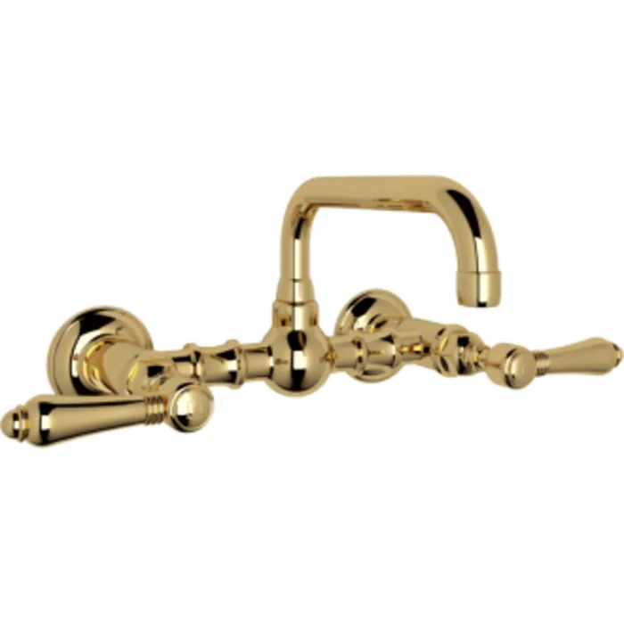 ROHL ITALIAN BATH VOCCA WALL MOUNTED BRIDGE LAVATORY FAUCET IN ITALIAN BRASS WITH METAL LEVERS AND HIGH SWINGING SPOUT