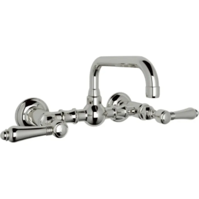 ROHL ITALIAN BATH VOCCA WALL MOUNTED BRIDGE LAVATORY FAUCET IN POLISHED NICKEL WITH METAL LEVERS AND HIGH SWINGING SPOUT