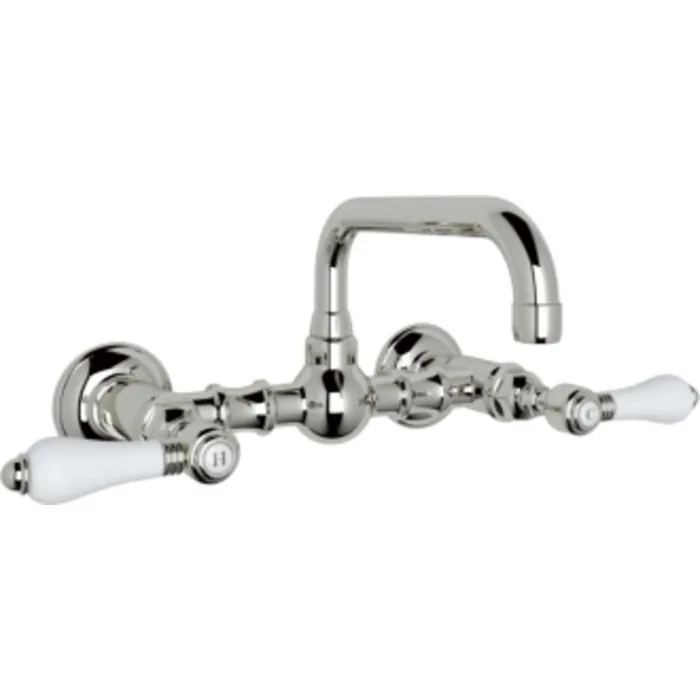 ROHL ITALIAN BATH VOCCA WALL MOUNTED BRIDGE LAVATORY FAUCET IN POLISHED NICKEL WITH PORCELAIN LEVERS AND HIGH SWINGING SPOUT
