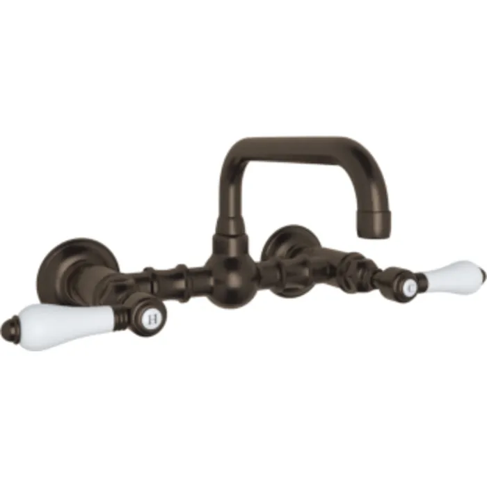 ROHL ITALIAN BATH VOCCA WALL MOUNTED BRIDGE LAVATORY FAUCET IN TUSCAN BRASS WITH PORCELAIN LEVERS AND HIGH SWINGING SPOUT