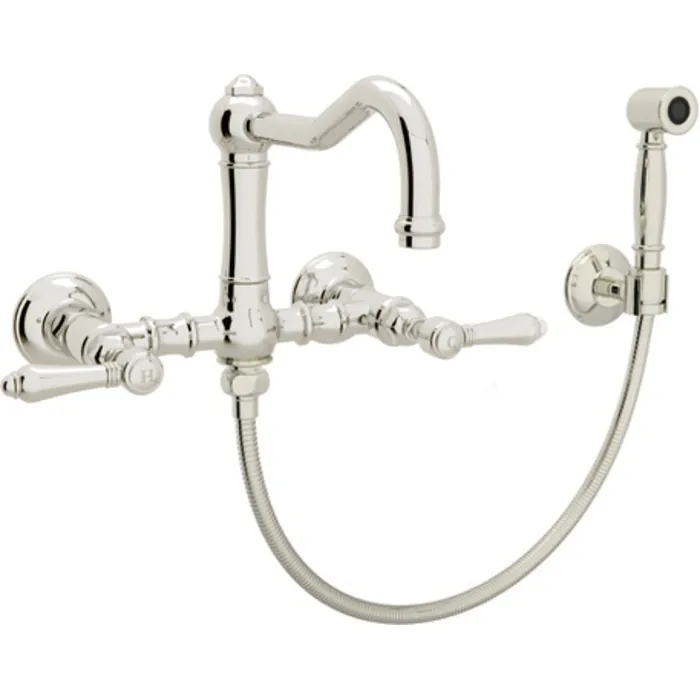 Rohl Country Kitchen Acqui Wall Mount Column Spout Bridge Kitchen Faucet With Sidespray In Polished Nickel A1456LMWSPN-2