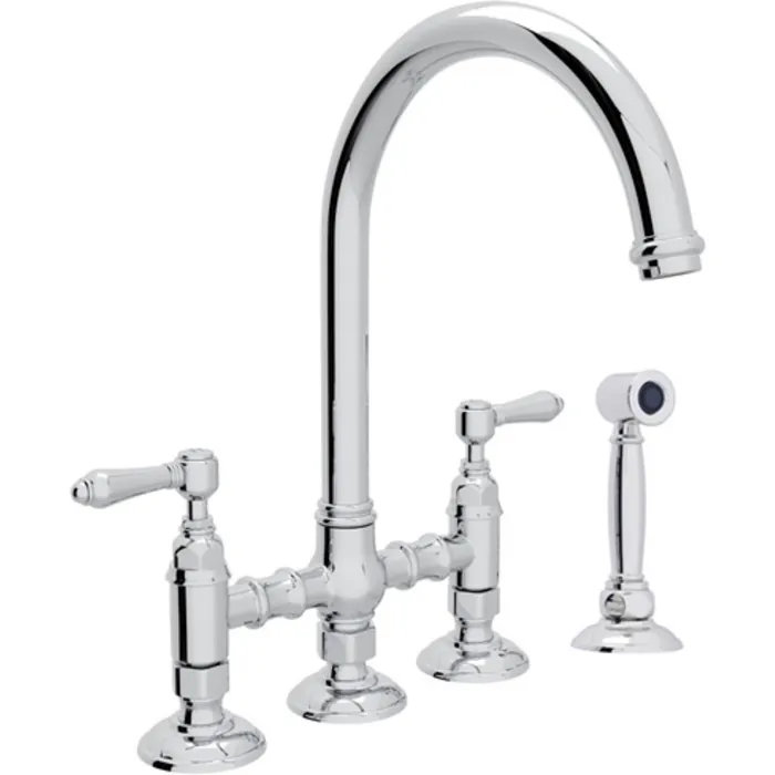 Rohl Country Kitchen San Julio Deck Mount C-spout 3 Leg Bridge Kitchen Faucet With Sidespray In Polished Chrome A1461LMWSAPC-2