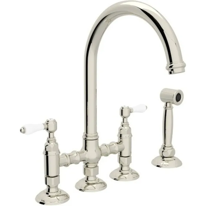 Rohl Country Kitchen San Julio Deck Mount C-spout 3 Leg Bridge Kitchen Faucet With Sidespray In Polished Nickel A1461LPWSPN-2