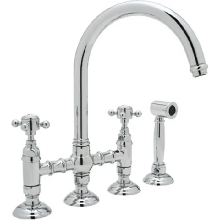Rohl Country Kitchen San Julio Deck Mount C-spout 3 Leg Bridge Kitchen Faucet With Sidespray In Polished Chrome A1461XMWSAPC-2