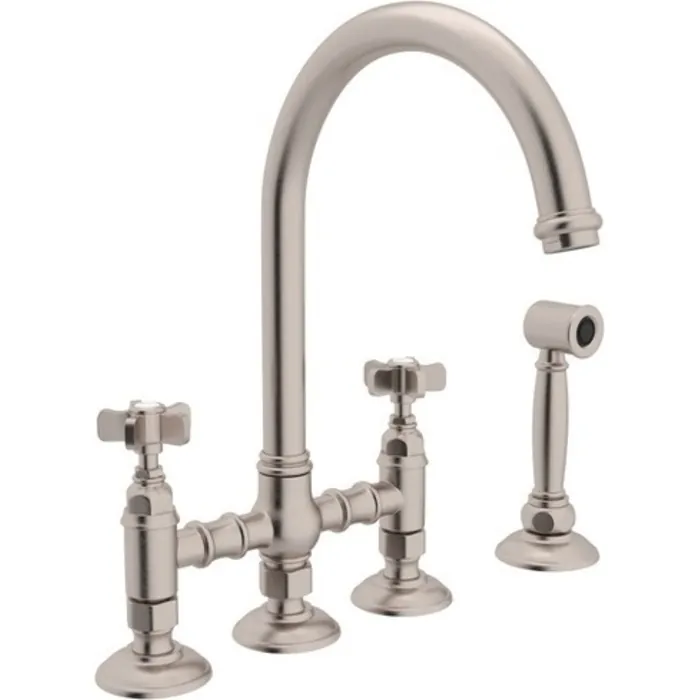 Rohl Country Kitchen San Julio Deck Mount C-spout 3 Leg Bridge Kitchen Faucet With Sidespray In Satin Nickel A1461XWSSTN-2