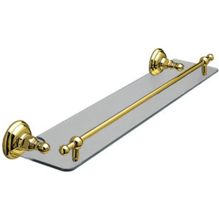 ROHL ITALIAN BATH WALL MOUNTED 24^ WIDE GLASS VANITY SHELF WITH FRONT RETAINING RAIL IN ITALIAN BRASS
