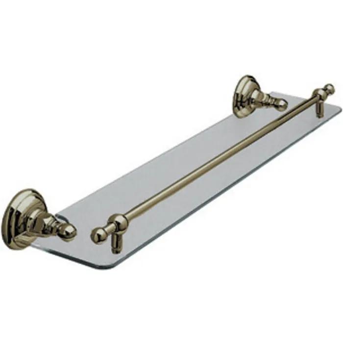 ROHL ITALIAN BATH WALL MOUNTED 24^ WIDE GLASS VANITY SHELF WITH FRONT RETAINING RAIL IN TUSCAN BRASS