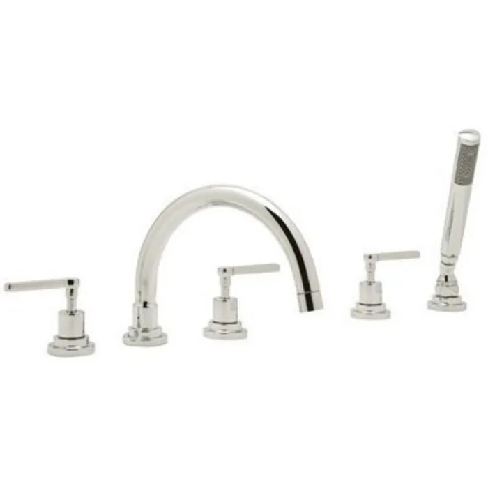 Rohl Lombardia 5-hole Deck Mount Tub Filler With C-spout In Polished Nickel A2214LMPN
