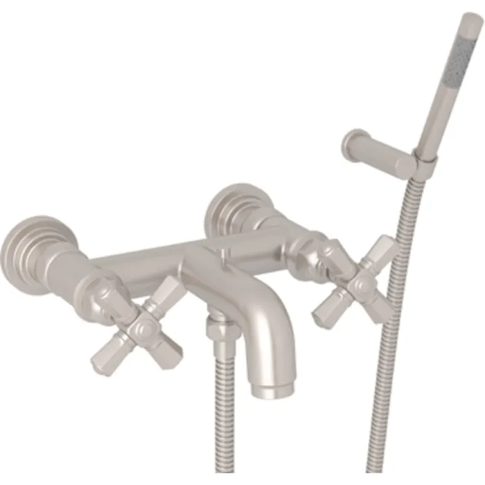 Rohl San Giovanni Wall Mount Tub Set With Handshower In Satin Nickel A2302XMSTN