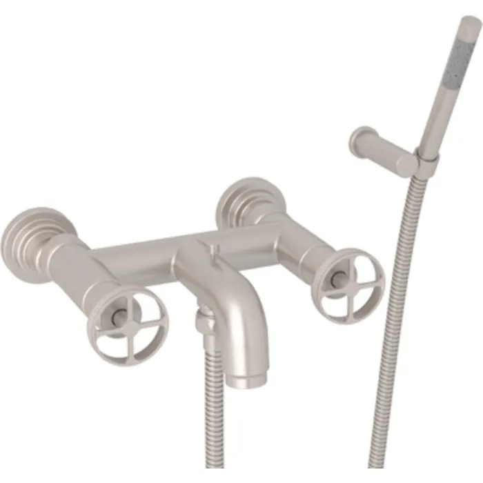Rohl Campo Wall Mount Tub Filler With Handshower And Wheel Handles In Satin Nickel A3302IWSTN