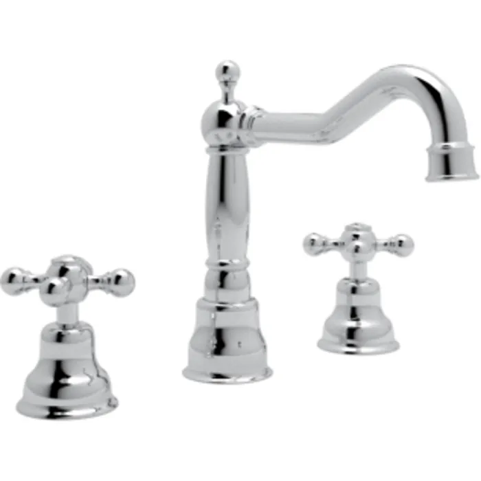 Rohl Cisal Arcana Widespread Traditional Italian Spout Lavatory Faucet In Polished Chrome With Cross Handles Pop-up And 7 1/8 inch Reach Fixed Spout AC107X-APC-2