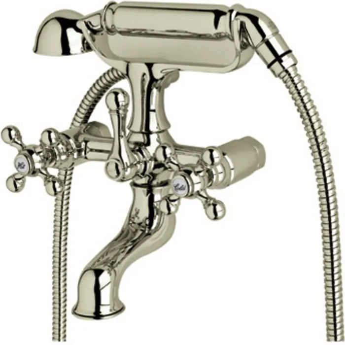 Rohl Cisal Tub Filler Mixer Without Unions In Satin Nickel With Cross Handles And Metal Handshower With Hose AC7X-STN