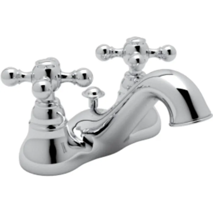 Rohl Cisal Arcana Centerset Lavatory Basin Mixer Faucet In Polished Chrome With Cross Handles And Pop-up AC95X-APC-2