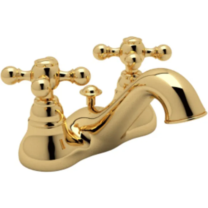 Rohl Cisal Arcana Centerset Lavatory Basin Mixer Faucet In Italian Brass With Cross Handles And Pop-up AC95X-IB-2