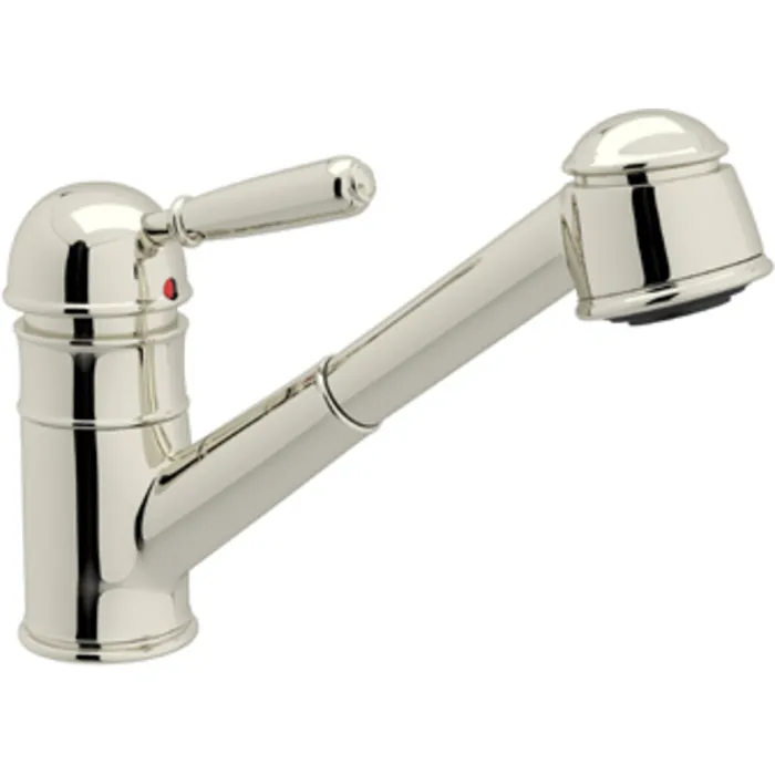 ROHL 1983 SINGLE METAL LEVER ITALIAN KITCHEN FAUCET IN POLISHED NICKEL WITH DOUBLE CHECK VALVE AND PULLOUT HOSE