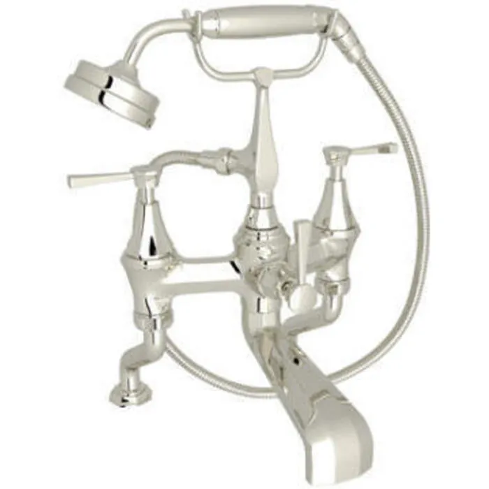 Rohl Perrin & Rowe® Deco Deck Mounted Tub Filler With Handshower In Polished Nickel U.3100LS/1-PN