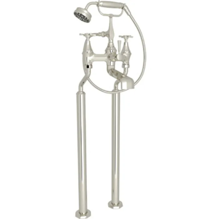 Rohl Perrin & Rowe® Deco Floor Mounted Tub Filler With Handshower In Polished Nickel U.3121X/1-PN