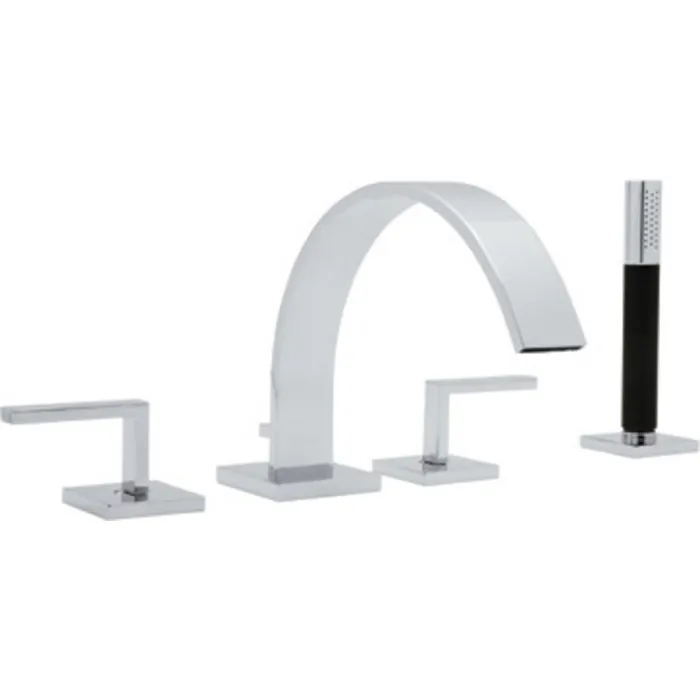 ROHL CISAL WAVE FOUR HOLE DECK MOUNTED TUB FILLER WITH LEVER HANDLES 3/4^ VALVES 8 27/32^ REACH SPOUT AND HANDSHOWER IN POLISHED CHROME
