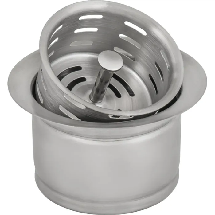 - Includes deep basket strainer. Helps trap large food debris and protect your disposal and drain. Convenient handle allows you to pull out the basket easily to empty into your trash.