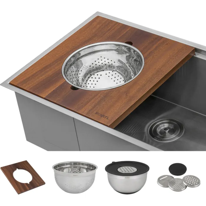 Ruvati Wood Platform with Mixing Bowl and Colander (complete set) for Workstation Sinks - RVA1288