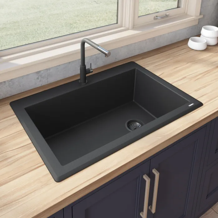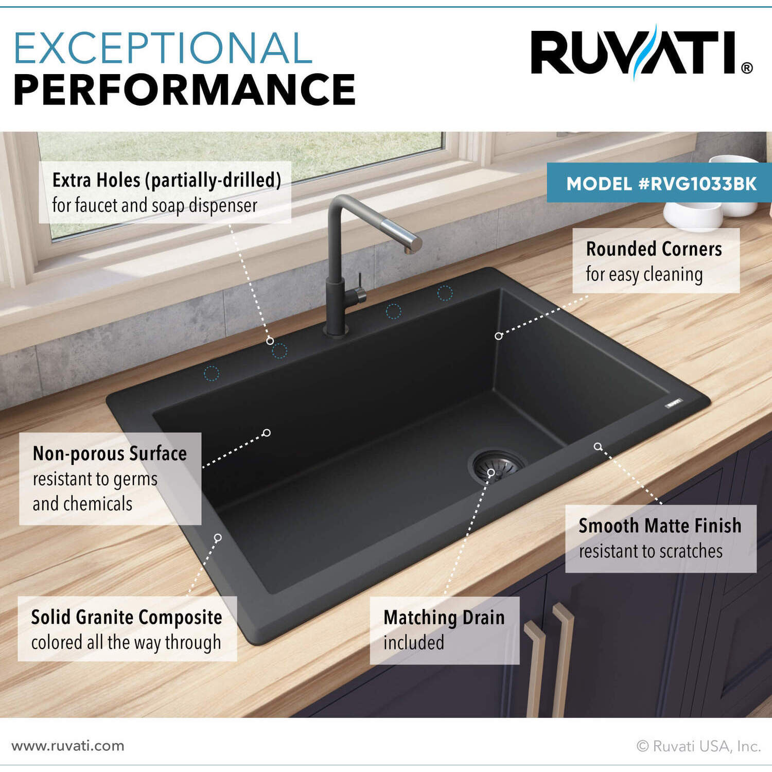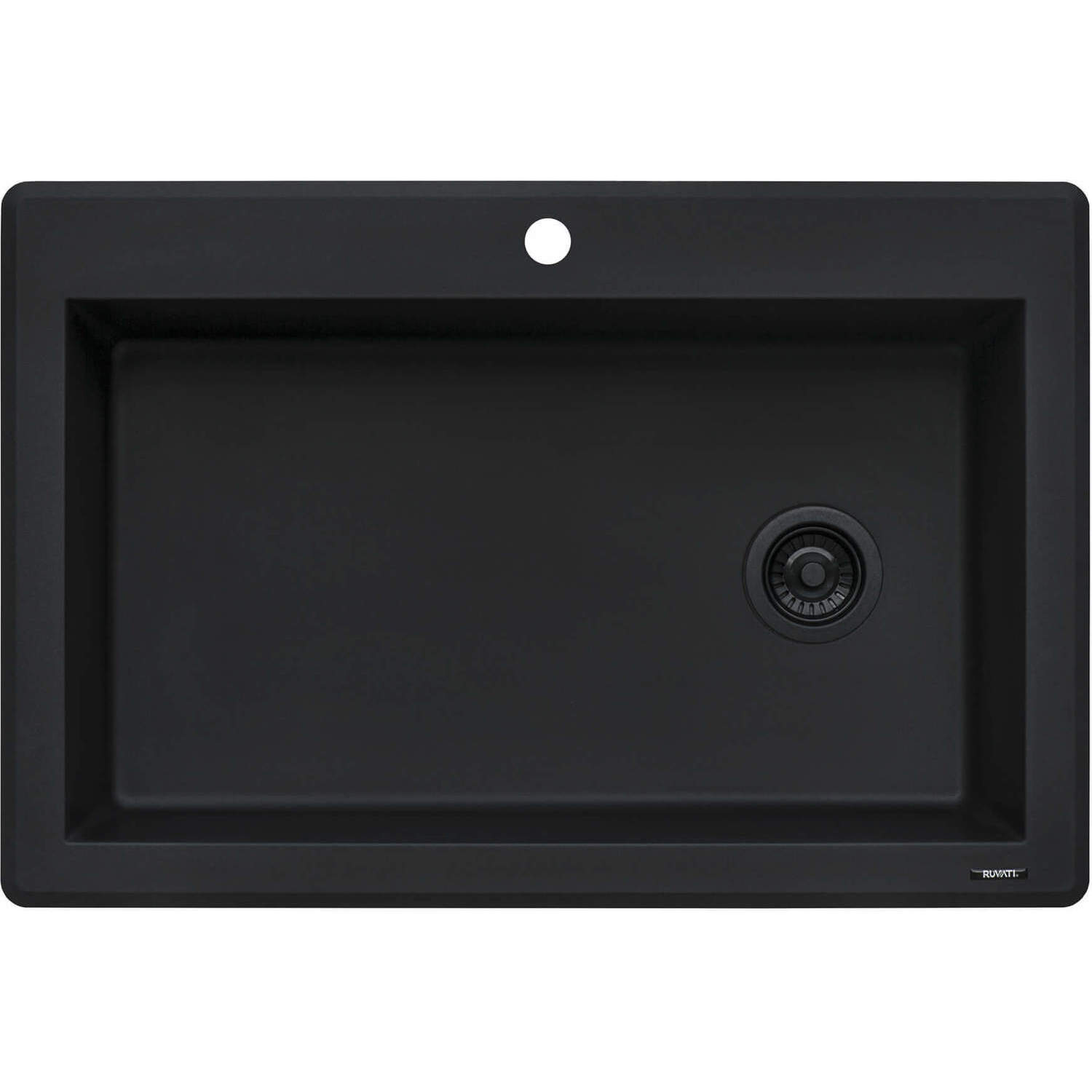 Ruvati 33 x 22 inch epiGranite Drop-in Topmount Granite Composite Single Bowl Kitchen Sink - Midnight Black - RVG1033BK
