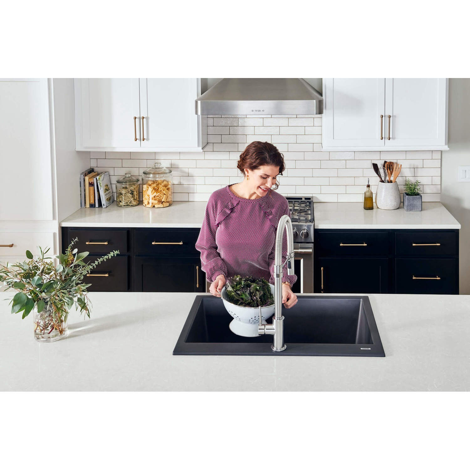 • Constructed of composite granite - 80% crushed natural granite for extreme durability and strength. The remaining 20% is a proprietary resin that makes the sink completely non-porous and resistant to most household chemicals.