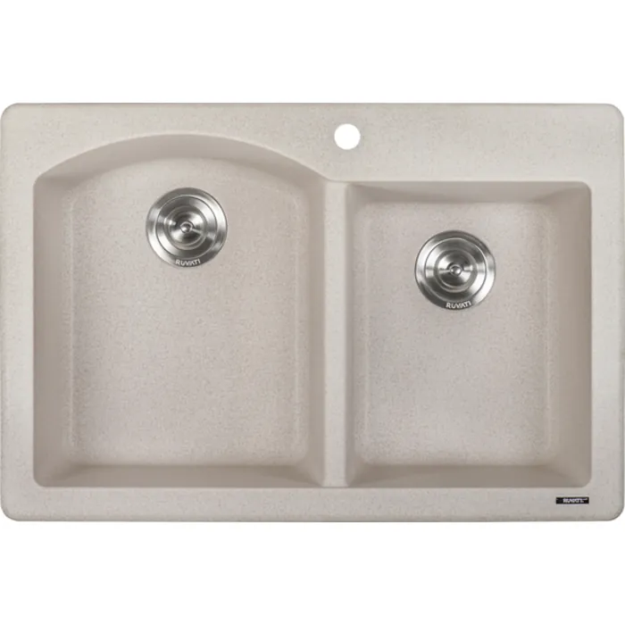 Ruvati 33 x 22 inch epiGranite Dual-Mount Granite Composite Double Bowl Kitchen Sink - Caribbean Sand - RVG1344CS
